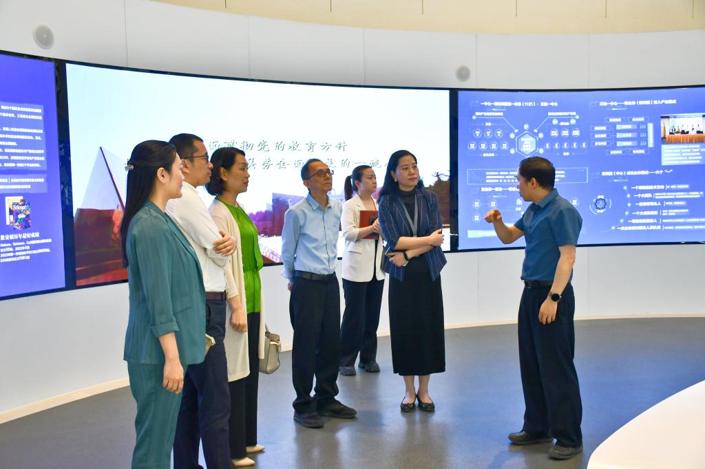 一行的来访表示热烈欢迎,并从建设背景及目标、改革亮点及举措、建设进度及成效三个方面对未来技术学院的基本情况进行了介绍。他表示,未来技术学院作为学校人才培养模式改革的“试验田”,着力实施“教、学、管”三大改革,持续推进项目驱动式人才培养模式改革,落实学校“一中心、一孵化、两围绕、医工学”产教深度融合新模式,校企共建企业主导的产学研深度融合创新联合体,打造“科学家+工程师”师资队伍,建立前沿性的项目式课程体系,着力造就拔尖创新人才。