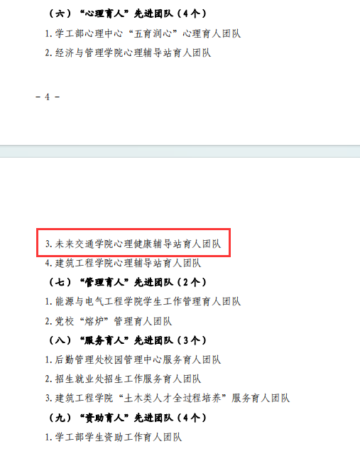 为落实立德树人根本任务,深化“三全育人”综合改革,加快构建完善一体化思想政治工作格局,根据《长安大学关于构建全员全过程全方位育人新格局的实施方案》《关于组织开展“三全育人”示范院系(处室)和先进团队评选工作的通知》等有关文件精神,学校组织开展了2022—2023年度“三全育人”示范院系(处室)和先进团队评选工作。