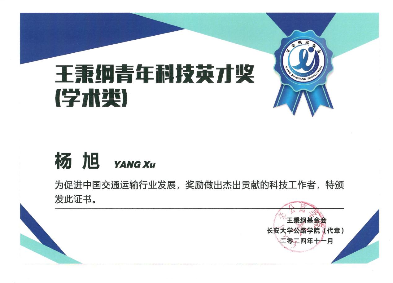 杨旭教授在内的国内外7名青年学者获得“王秉纲青年科技英才奖(学术类)”,也是长安大学唯一获此荣誉的教师。中国科学院院士赖远明和长安大学党委书记陈志坚为获奖者颁奖。