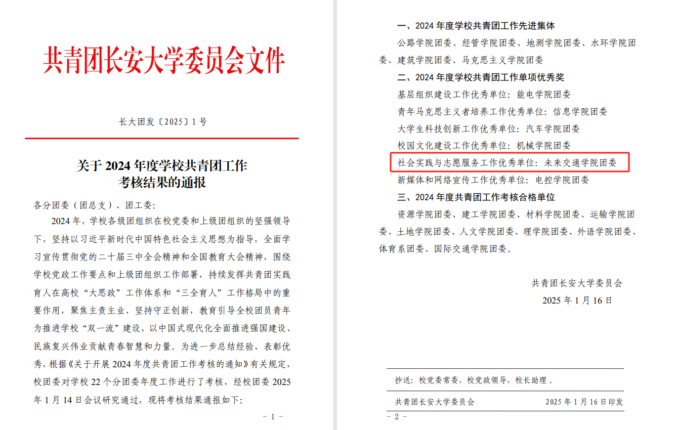 近日,共青团长安大学委员会印发《关于2024年度学校共青团工作考核结果的通报》,外围买球