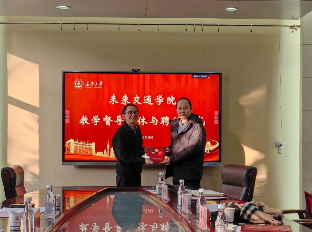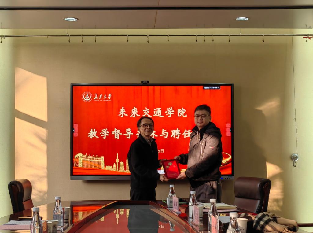 随后,副院长杨旭宣读了学校《关于聘任长安大学2025年教育教学督导的决定》。仪式环节,Fwa院长向荣休督导姜洪教授颁发了荣休证书,并向新聘任教学督导组组长马荣贵教授、兼职督导陈文强和戴涛分别颁发了聘书。