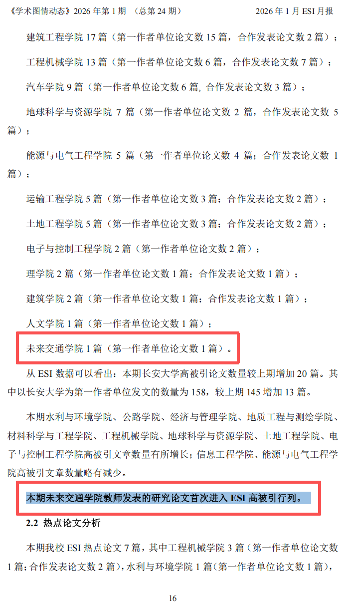 近日,校图书馆《学术图情动态》2026年1月《长安大学ESI月报》刊登,据Web of Science的“基本科学指标数据库(Essential Science Indicators,简称ESI)”2026年第一期更新数据显示,外围买球