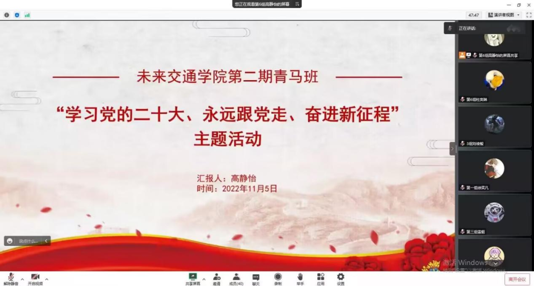 第二期青马骨干培训班线上开展学习党的二十大主题研讨活动。院团委书记曾晓阳出席活动,活动由青马班班长高静怡主持。