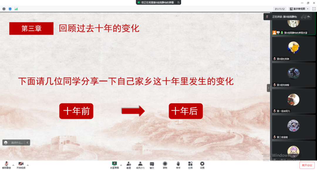 交流互动环节,三名学员分享了自己近期以来的学习心得感悟。家乡当地人民通过辛勤付出,创造了丰硕的劳动成果,正是体现于十年来自己家乡在基础设施建设、生态环境保护等方面的变化。学员们联系自我实际,尤其围绕政治理论素养提升与课外劳动技能强化两方面开展研讨,就当代青年学子如何把红色理论与劳动教育相结合提出了建设性意见,表达了自己坚定为国家建设奉献力量的信心与决心。
