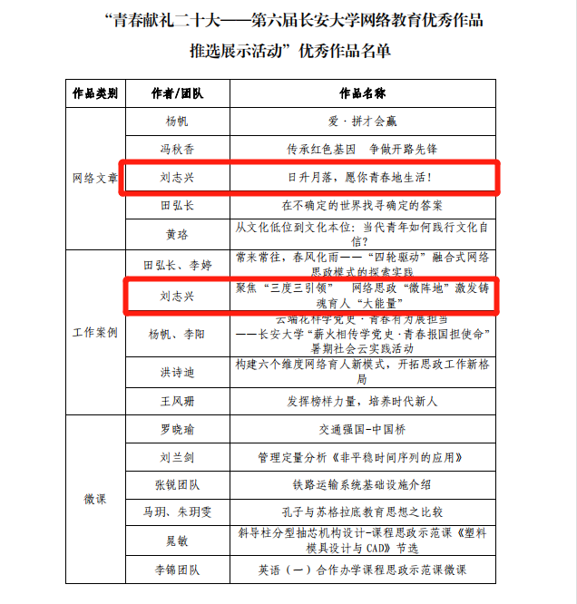近日,长安大学党委公布了2022 年优秀校园新媒体平台获奖名单、第六届大学生网络文化节获奖团队及个人名单、网络教育优秀作品名单,外围买球