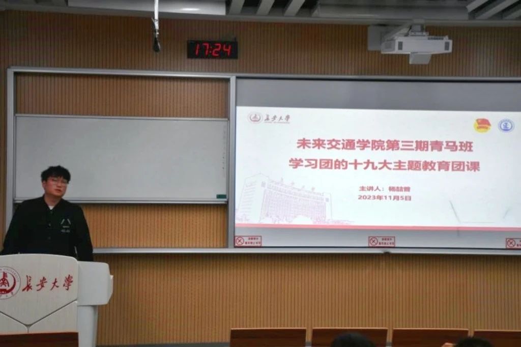 在学院青马学生骨干培训班课堂上,院团学工作中心副主任杨喆普围绕青年马克思主义者的知与行为主题,带领全体青马学员开展专题学习。结合时代使命、青春奋斗和传承创新三条线索,全体学员交流研讨如何做坚定的青年马克思主义者,并在同辈中发挥好榜样引领作用。