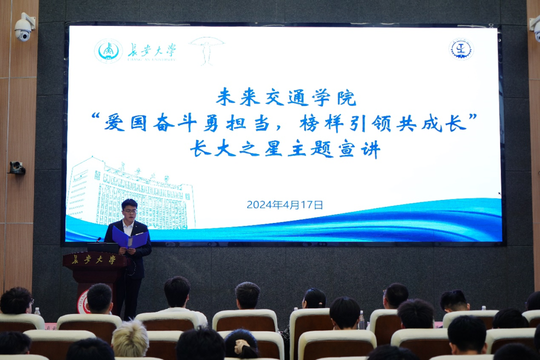 于北校区师生服务大厅第二报告厅举办“爱国奋斗勇担当 榜样引领共成长”长大之星宣讲团进院系活动暨工科青年说(第26期)。此次活动特邀公路学院肖云峰、汽车学院黎敏琦、信息学院杨麒瞳、运输学院梁星宇,外围买球