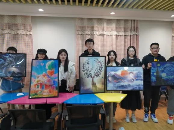 通过“普鲁斯特的回忆”调香体验、“西蒙尼德斯的记忆宫殿”集体拼图、“荣格的手绘插图”立体画创作、“涩谷昌三的绵羊”羊毛毡戳戳乐、“科尔斯的色彩绘梦”流体熊绘画等形式,学生个人或组队进行作品绘制或创作,在活动中增强审美能力,缓解学生焦虑情绪,感受心灵的平和,构建和谐的人际关系,体验万物美好。