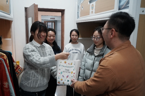 活动第一环节,学院全体辅导员老师们携带精心准备的礼物盲盒走进女生宿舍。在走访过程中,辅导员老师热情了解同学们的学习情况与日常生活,对大家在生活中遇到的困难给出贴心建议,叮嘱其随时关注自身身心健康状况;同时鼓励同学们要勇敢追求自己的梦想,不断提升自我,女生们表示会珍惜这份来自学院的关怀,努力成为更加优秀的自己。整个宿舍充满了温馨和谐的氛围,让这个女神节变得更加难忘。