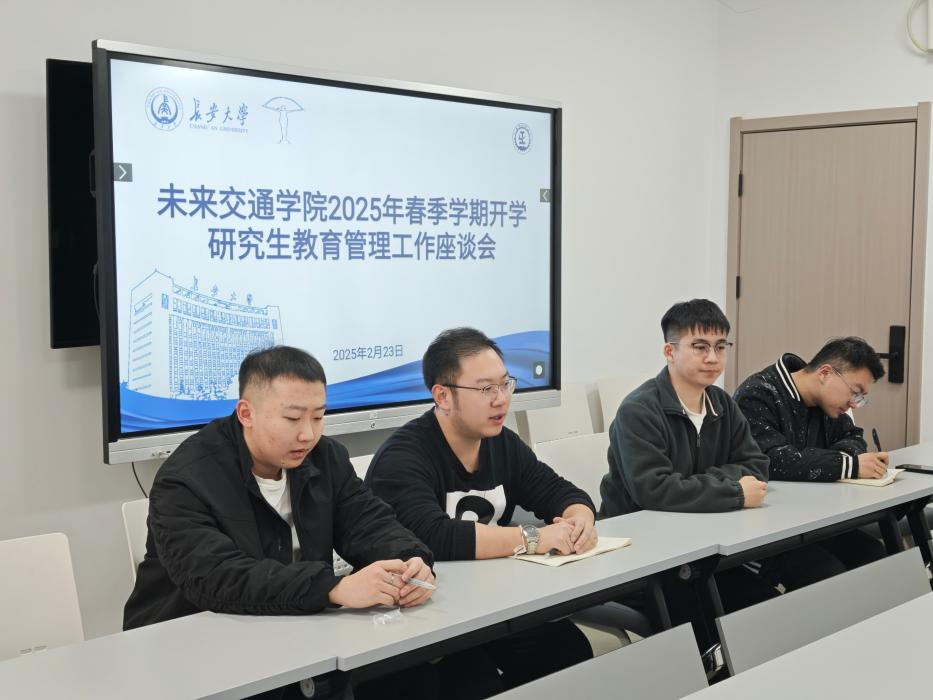 在南校区北院学生社区活动室召开2025年春季学期研究生教育管理工作座谈会。学院学生事务部主任、研究生辅导员刘志兴及2024级研究生代表参会。
