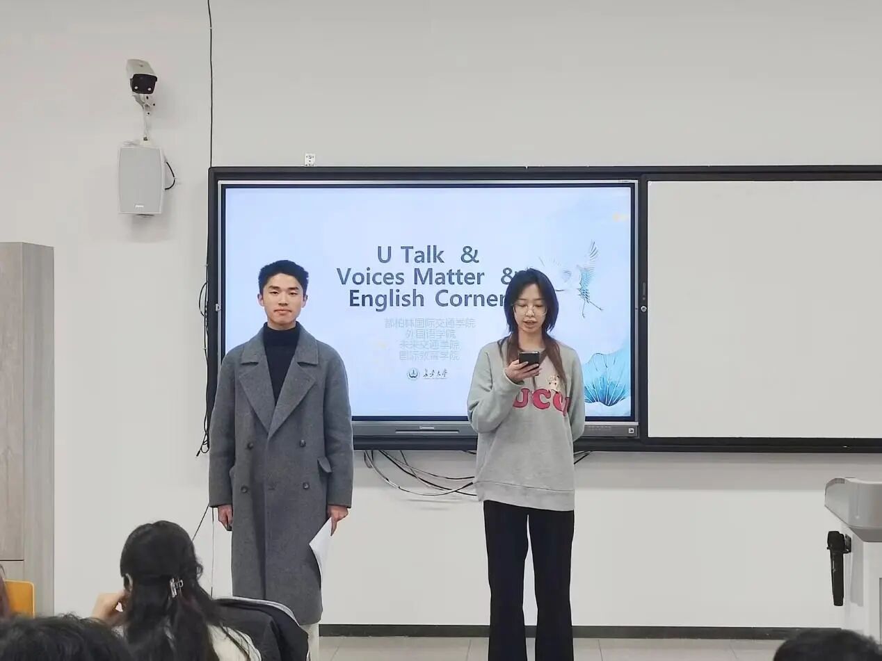 学生会联合长安都柏林国际交通学院学生会、外国语学院学生会和国际教育学院学生组织于WH1206教室成功举办第十二期“Voice Matter&U Talk&跨语通途”外语角活动,各学院教师代表出席活动,活动由李张榕一、李嘉妮共同主持。