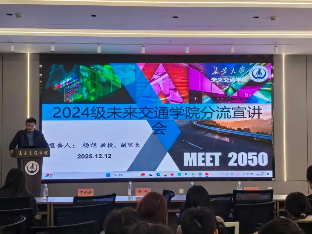 在北校区未来大师堂召开了2024级本科生专业分流宣讲会。本次宣讲会旨在帮助2024级学生全面了解学院下设各专业的特色与发展方向,为即将到来的专业选择提供指导与支持。2024级全体本科生参与,现场气氛热烈。