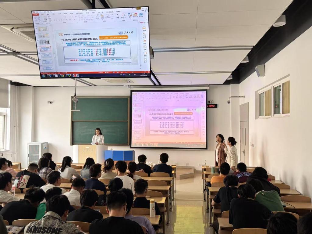 周珍珍副处长结合自己多年工作经验,深度剖析了国际联合培养的战略价值,从学业发展与职业规划角度出发,指出应对全球交通挑战亟需国际化人才,学校将通过专项资助计划支持学生海外研修,并鼓励参会学生积极反馈培养需求,推动未来定制化联合培养项目落地。