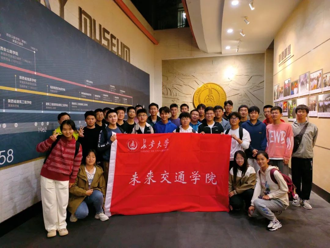 长安大学创建于新中国百废待兴之时,壮大于改革浪潮迭起之际,兴盛于高等教育强国大势之中,与共和国同向同行七十余载。同学们跟随讲解员的步伐走入序厅,“弘毅明德,笃学创新”的校训浮雕映入眼帘,历史发展的画卷徐徐展开,也为我们展示了长安大学建校以来到三校合并飞速发展的故事。