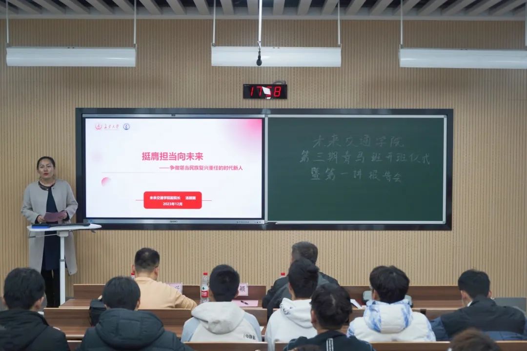 开班仪式结束后,汤颖颖以“挺膺担当向未来,争做堪当民族复兴重任的时代新人”为主题作第一讲报告。她从新时代青年学生骨干的角色与定位剖析切入,详细讲解了新时代青年要具备的五项基本能力,要求青马学员要在品行、道德、知识和素养提升方面勤学苦练,做政治和能力上“双强”、品德和学习上“双优”的坚定马克思主义信仰者。习近平总书记强调,“新时代是追梦者的时代,也是广大青年成就梦想的时代。”希望各位学员在奋发有为中践行初心使命,用奋斗擦亮青春底色,成就更加精彩的人生。
